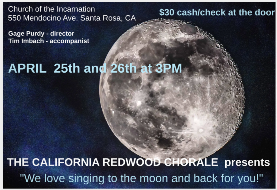 California Redwood Chorale..sings to the moon and back for you